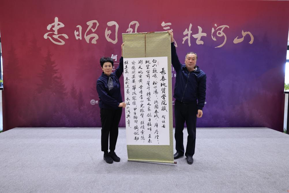 在捐赠仪式上,瓮晶波理事长代何继善院士向吉林大学地学部捐赠书法作品《长春地质学院赋》,雲麓书画院院长彭远凉代何继善院士向考古与艺术博物馆捐赠陶瓷书法。此次捐赠不仅是对母校的有形馈赠,更承载着学子对母校的深厚情谊与精神反哺,为学校的文化建设与学科传承注入了新的无形力量。